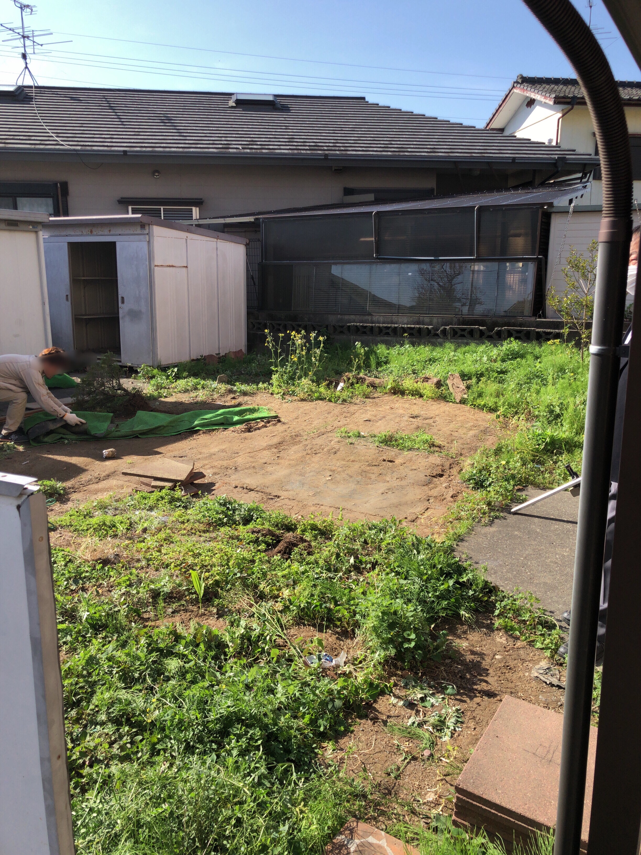 当初は庭にして、スタッフが休めるスペースをと考えていたのですが、業務に没頭するあまり出来ずじまい。駐車場の手狭になってきたのもあり、今回の工事に至りました。